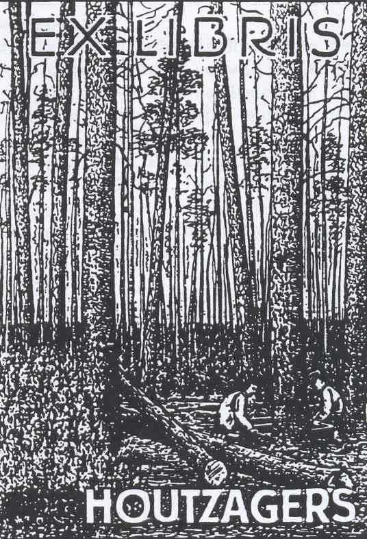 Het volgende heeft eigenlijk niets te maken met familiewapens, maar wel met een afbeelding die symboolfunctie heeft voor de familie. Het familielid Gijsbertus Houtzagers, boomkundige en directeur van de Heidemaatschappij, heeft ooit een ex libris laten maken die goed paste bij zijn beroep en onze naam: