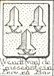 Voordat u, familielid dat deze regels leest, zich rijk gaat rekenen, vertel ik u gauw dat wij met dit voorname geslacht geen enkele familieband hebben. Hoe kwamen ze er dan bij om met dit wapen rond te lopen, zult u zich afvragen. Welnu, de schoonmoeder van Petrus Johannes (zie boven) heette van zichzelf Wendt. Deze Wendten (niets von of zu) waren tuinders in het Westland. Het moet zo gegaan zijn dat deze familie, toen in de 19e eeuw Rietstaps Armorial Général verscheen, met alfabetisch op achternaam geordende familiewapens, gedacht heeft "We staan erin!" en meteen zegelringen heeft laten maken. Toen ik dit had gereconstrueerd, verhuisde de ring van Oom Jan van mijn vinger naar het nachtkastje, waar hij ligt te wachten totdat ik hem aan een von Wendt zu Crassenstein kan verpatsen. Hieronder ziet u hoe het wapen bij Rietstap schematisch wordt afgebeeld. De afgebeelde voorbeelden zijn een soort helmen ("chapeaux de fer"), de arceringen en stippeltjes duiden kleuren aan.