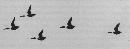 boven de aarde; de wilde tortels en blauwe duiven vliegen af