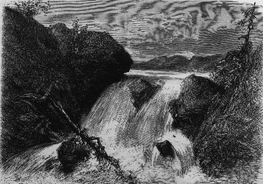Zie, daar stort zich de schuimende waterval met daverend geweld uit de hoogte neder in de diepte. Het is een prachtig gezicht, een majestueus gedruisch. De zeven kleuren des lichts worden gescheiden; de lucht dreunt, en de wind voert het witte, vlokkige schuim wijd en zijd mede. De harde rots siddert, en geheele brokken worden afgescheurd; de pasgeboren stroom voert ze mede als lichte vederen, en ploft ze neer in de diepte, waar hij alleen ze kan oplichten. Water! gij zijt de sterkste, de krachtigste, de edelste der vier hoofdstoffen! De Aarde is stom, dood en roerloos; maar uwe stem is als de donder, uwe spraak heeft allerlei geluid; gij leeft, gij zijt als bezield; gij beweegt u naar alle kanten als eene kronkelende slang, als eene bevallige schoone, als een onstuimig ros, dat struikelblok acht noch slagboom ontziet! Onzichtbaar is de Lucht; maar gij blinkt als een edel metaal, met maagdelijk smettelooze reinheid! Uwe veerkrachtige oppervlakte werpt de vermogende stralen der zon terug, en doet het trillend geluid huppelen naar uwe maat! Het Vuur is afhankelijk van voedsel en lucht; maar gij zijt vrij en u zelf genoegzaam, ja, gij vernietigt zelfs het vuur, waar het (te vroeg!) naar de oppermacht staat over al de elementen! Schiet heen, koninklijke bergstroom! schiet heen en heersch, vervul de dalen, splijt de heuvelen, spot met den trots en het zelfvertrouwen der vaste stof! Richt uwen weg werwaarts gij wilt! Zwel schuimende, verbreed u bruisende! Word gevreesd en geëerd! En leg u dan ter ruste in den schoot des breeden oceaans: hij alleen is uwer, gij zijt zijner waardig! Gij beide zult leven totdat de aarde zal worden opgerold als een kleed, en alle hoofdstoffen zullen branden!