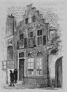\ Het duurde een minuut of wat alvorens een eigenaardig sloffen in het voorhuis de aankomst eener bejaarde keukenmeid verried, die eerst natuurlijk den aardappel, waaraan zij bezig was, had moeten afschillen, daarna den bak van haar schoot en haar beide voeten van haar stoof zetten, om vervolgens haar roode muilen aan te trekken, haar neus met het buitenste van haar hand af te vegen, haar eva in de schuinte op te slaan, en den langen weg te aanvaarden, die van de keukendeur tot aan den barometer twintig, en van den barometer tot de mat zes stappen vergde. In dien tusschentijd bekeek ik den voorgevel van de woning. Het huis was, als mijn oom, burgerlijk, en schoon het huis ouder was, was hij toch, zoowel als zijn huis, van een vroeger eeuw. Het had een trapgevel, en de bovenste verdieping was met kruiskozijnen in het lood. Het had slechts ééne zijkamer, met twee schuiframen met middelsoort ruiten, versierd door groene gazen gordijntjes op breede koperen roeden, in het midden een weinigje opengeschoven, om het licht vriendelijk uit te noodigen, wel te willen beschijnen twee bloempotten van mijne tante, onder streng verbod van iets anders in `t vertrek of op te helderen of te verbleeken. Ik was nieuwsgierig of ik ooit in die kamer zou toegelaten worden. In allen gevalle werd ik alvast in `t voorhuis gelaten, en kwam ik spoedig in een achterkamer met een hoog licht, in de onmiddellijke tegenwoordigheid van mijn oom en tante. De ontvangst was recht hartelijk, en de goede menschen, die mij nog nooit in mijn leven gezien hadden, schenen zeer verheugd dat genoegen te smaken, ofschoon gemeld genoegen bij den eersten eenigszins scheen verbitterd te worden door de omstandigheid, dat ik juist op een donderdag gekomen was, als wanneer de voorkamer "gedaan werd," zoodat men juist achter zat; waarop mijne moei aanmerkte, dat neef