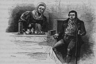 het wel zoo voor lief zou nemen, en dat hij zeker in zijn ouders huis ook wel eens in een achterkamer gezeten had; waarop neef zei, dat dit een heel lieve achterkamer was, en dat hij wel van een achterkamer hield; waarop oom zei, dat hij er, al zei hij `t zelf, niet van hield, en tante het met neef eens was dat zij er wèl van hield; waarop oom wat bijkwam met te zeggen, dat hij er `s avonds nogal van hield; waarop tante en neef zeiden, dat zij er ook `s avonds het méést van hielden; zoodat er met eenparigheid van stemmen besloten werd, dat een achterkamer met een hoog licht des avonds op haar voordeeligst is. Ik ben verplicht hier bij te voegen dat de geheele discussie op de goelijkste en vriendelijkste wijze gevoerd werd, terwijl oom zijn ingebrande pijp met een zwavelstok weer op de wijs