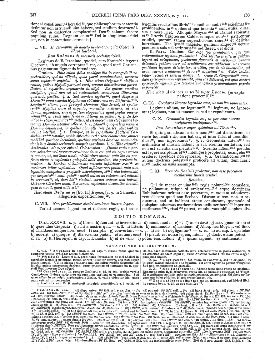 | 1. | St. Ambrose De Fide ad Gratianum Augustum, Chap.5, Para. 42. One colleague challenged me on the identification of Ambrose as the source of this quote, sending a reference he found electronically to Gratian's Decretum (about 1140), Concordia Discordantium Canonum ac Primum de Iure Naturae et Constitutionis, VI. Item ex responsione Adriani Papae ad Carolum, c. 49. See Gratian: Text und Images der Edition Friedbergs (1879) available at the Bayerische Staatsbibliothek, and I admittedly knew the quote, not from my extensive reading in Ambrose, but only from Newman's Apologia pro sua vita. Originally charmed by this example of how even traditional scholarship might be improved by electronic methods, I checked Newman's reference, just to be sure. Result: No clear victory for electronic methods this time, I'm afraid. Newman's reference was correct! |