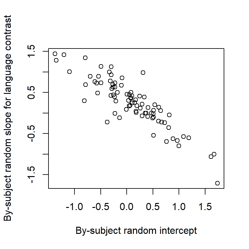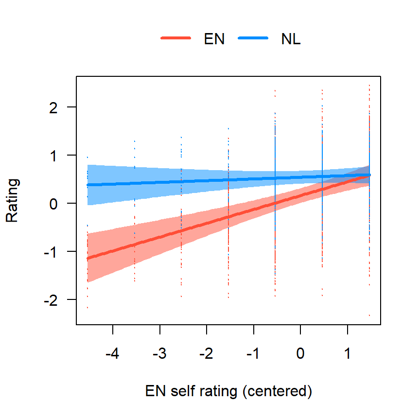 m0 <- lmer(Rating ~ Lang + (1|SID), data=lls) # comparison: best simpler model (BAC n.s.)