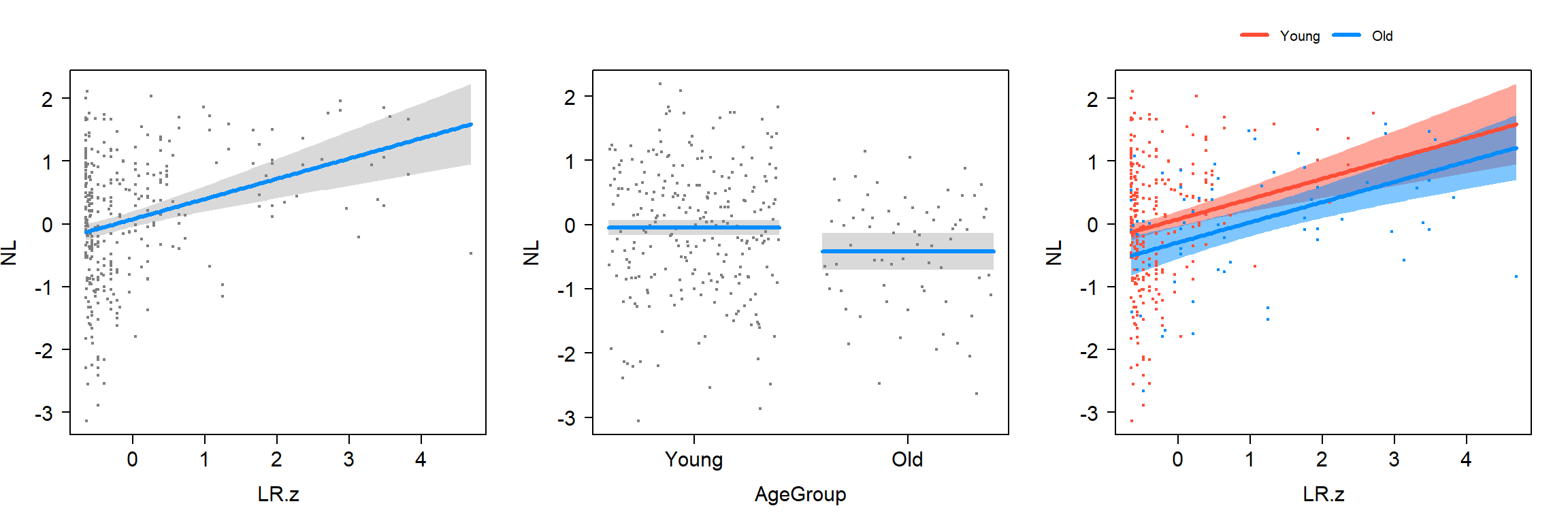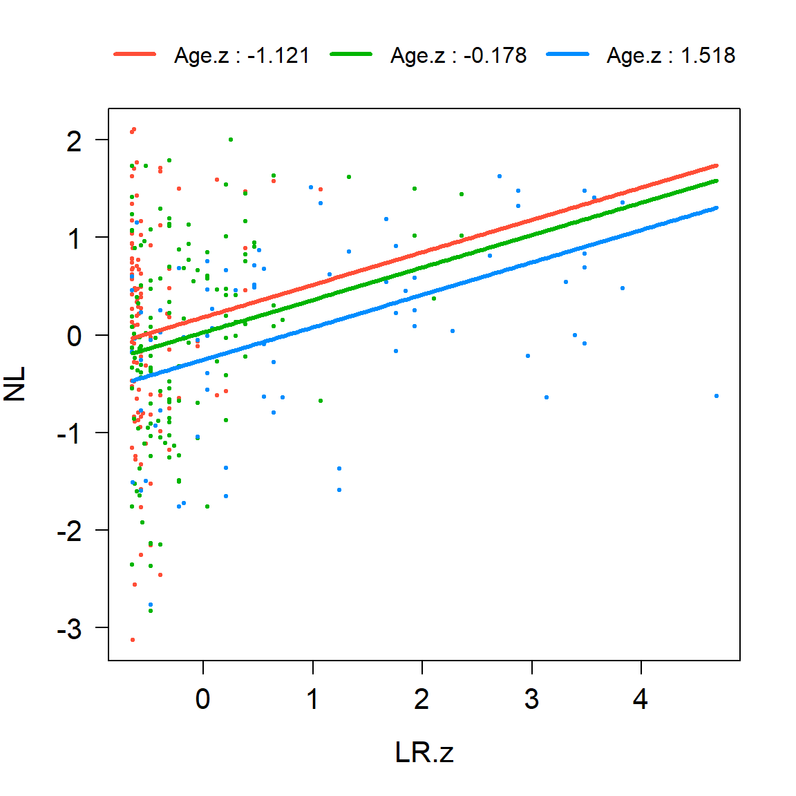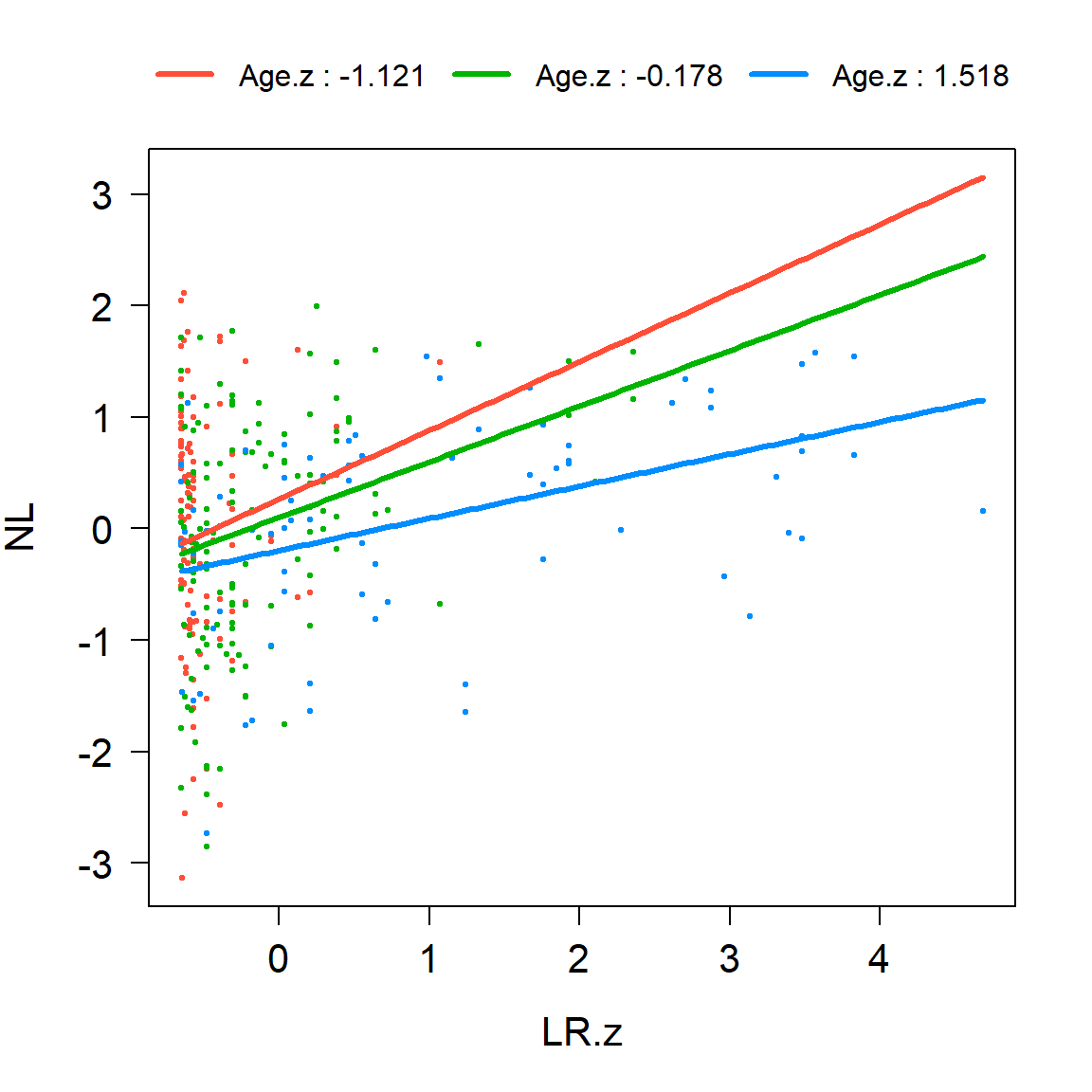 lm(formula = NL ~ LR.z * AgeGroup, data = saa)