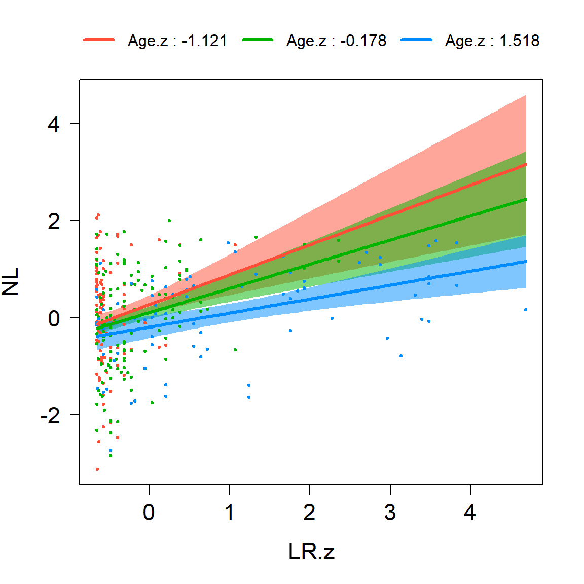 Model 2: NL ~ LR.z * Age.z
