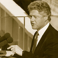 President William (Bill) J. Clinton, delivering his inaugural address to the nation, January 21, 1993. During his administration, the United States enjoyed more peace and economic well-being than at any time in its history. He was the second U.S. president to be impeached and found not guilty.