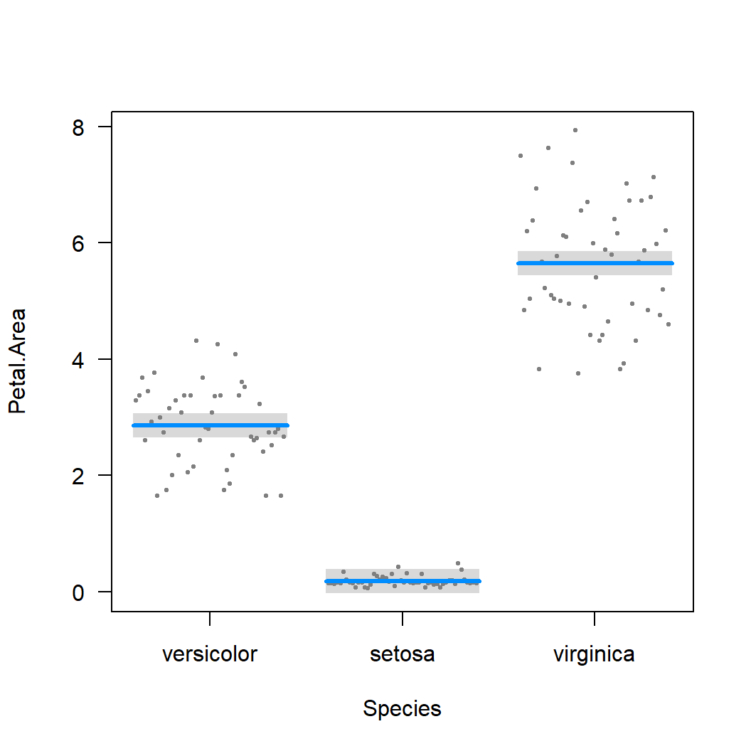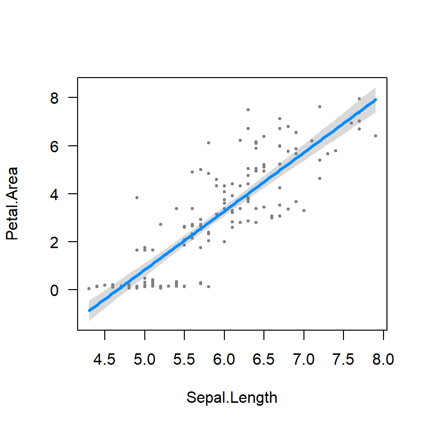 Model 1: Petal.Area ~ Sepal.Length.c