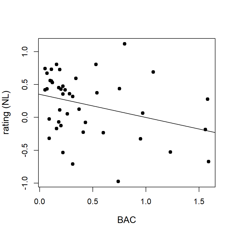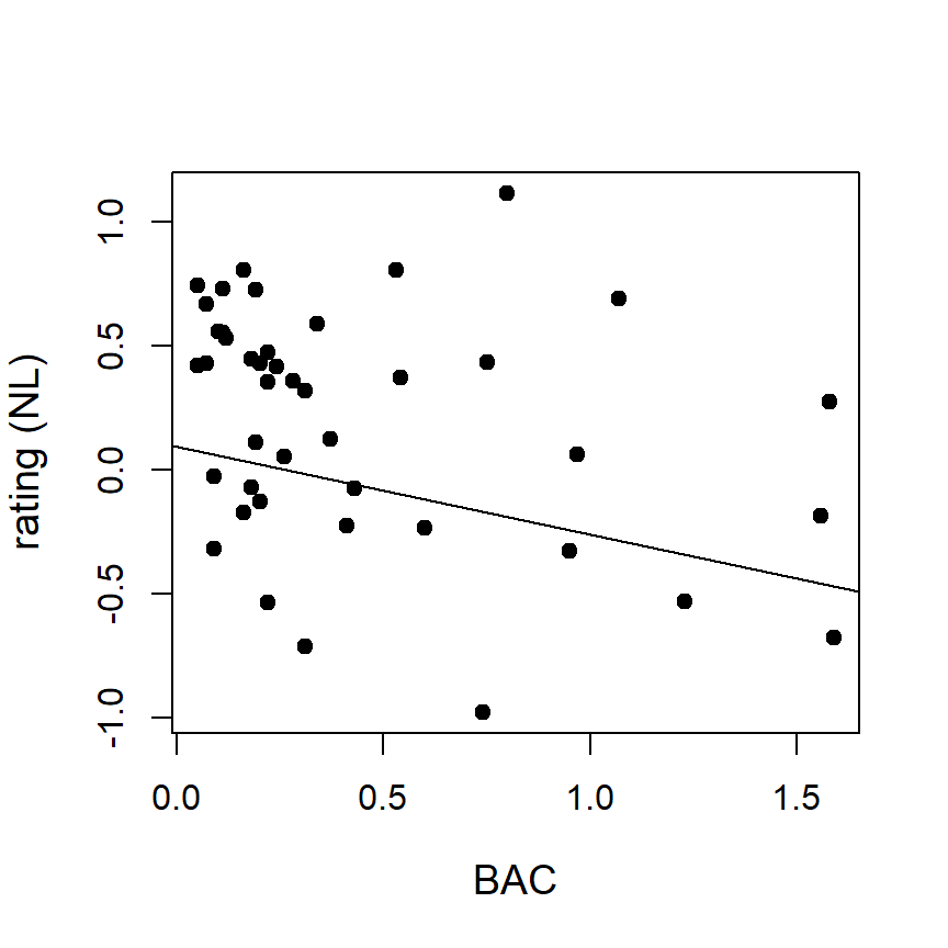 ratingNL decreases by 0.35lls$BAC.z = (lls$BAC - mean(lls$BAC)) / sd(lls$BAC) # z-transform BAC values