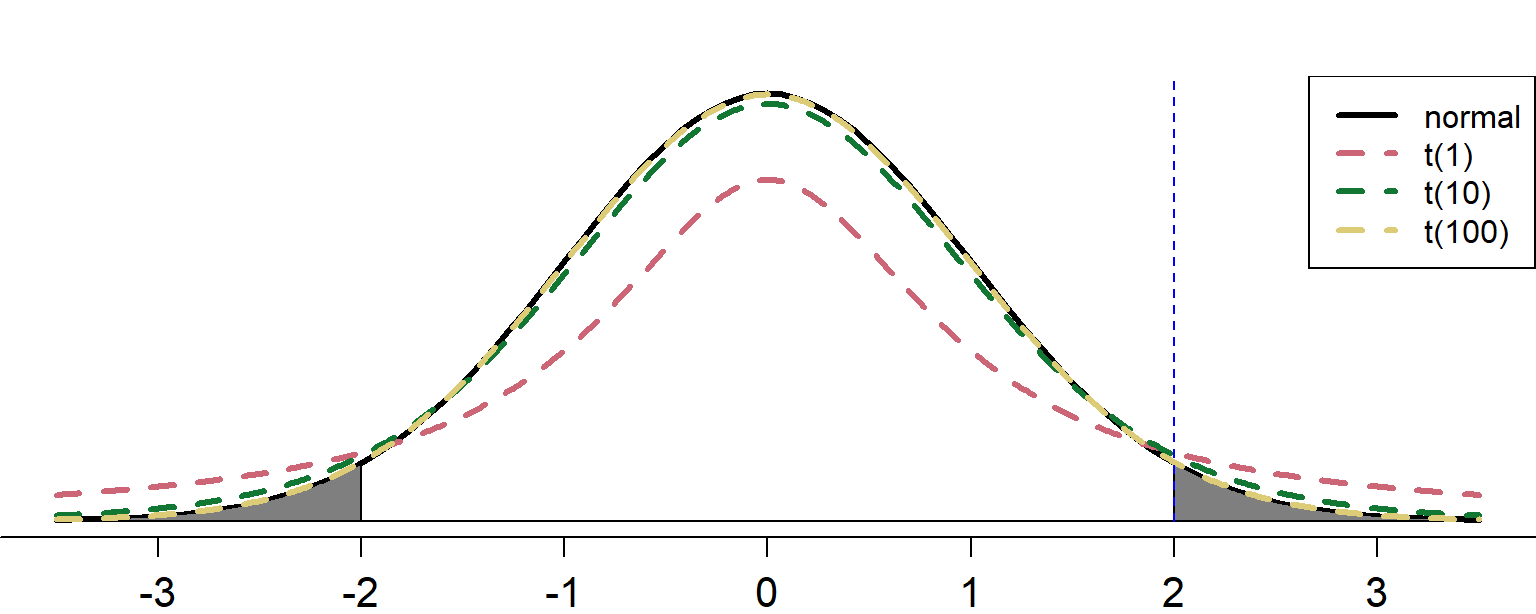E.g., \(z \geq 2 \implies p \approx 0.025\)