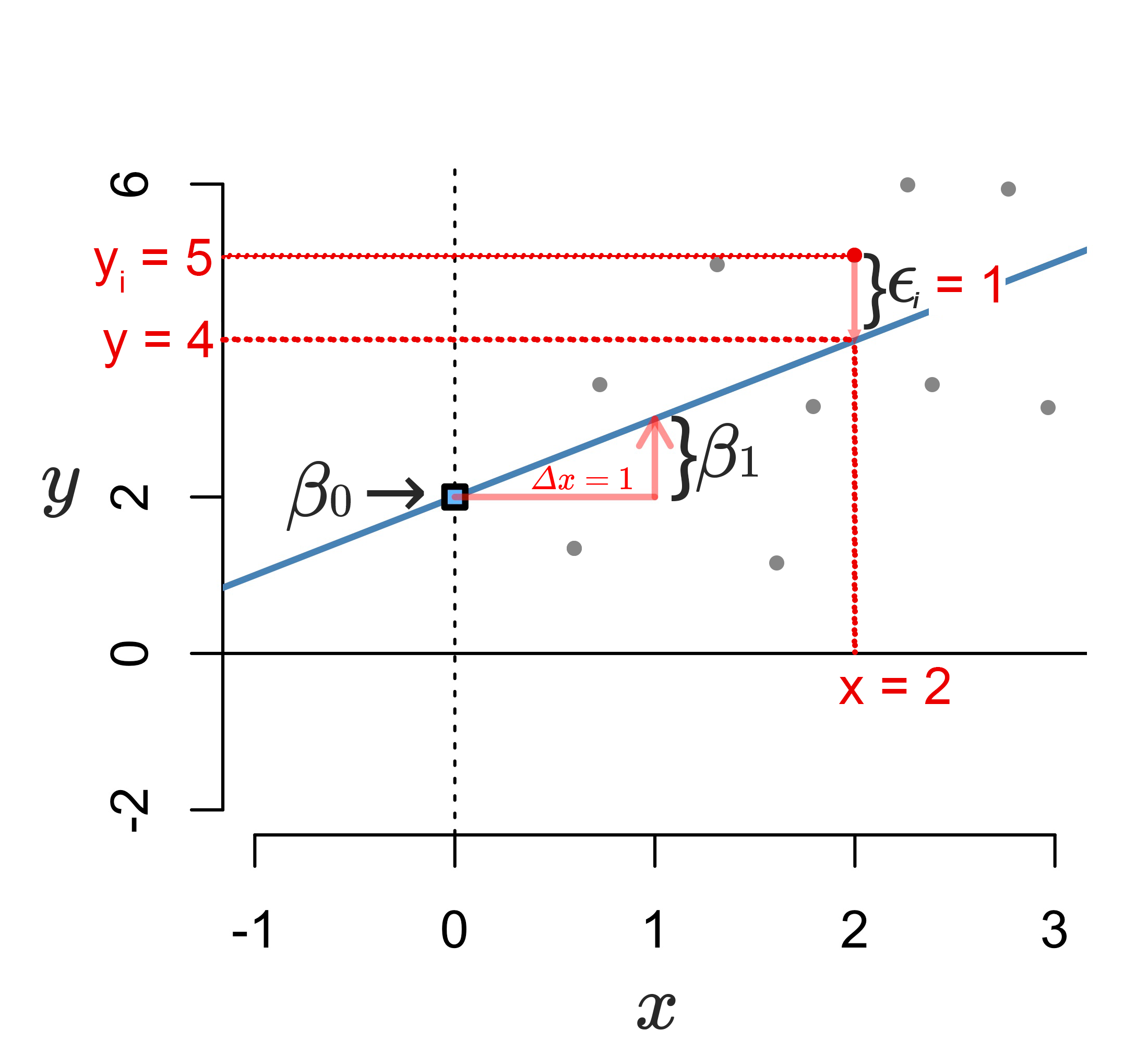 If actual \(y_i = 5\), then residual \(\epsilon_i = 5 - 4 = 1\)
