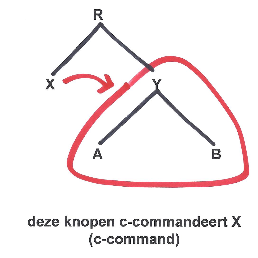 X c-commandeert Y als Y (een onderdeel van) de zuster is van X klinkt bekend? illustratie